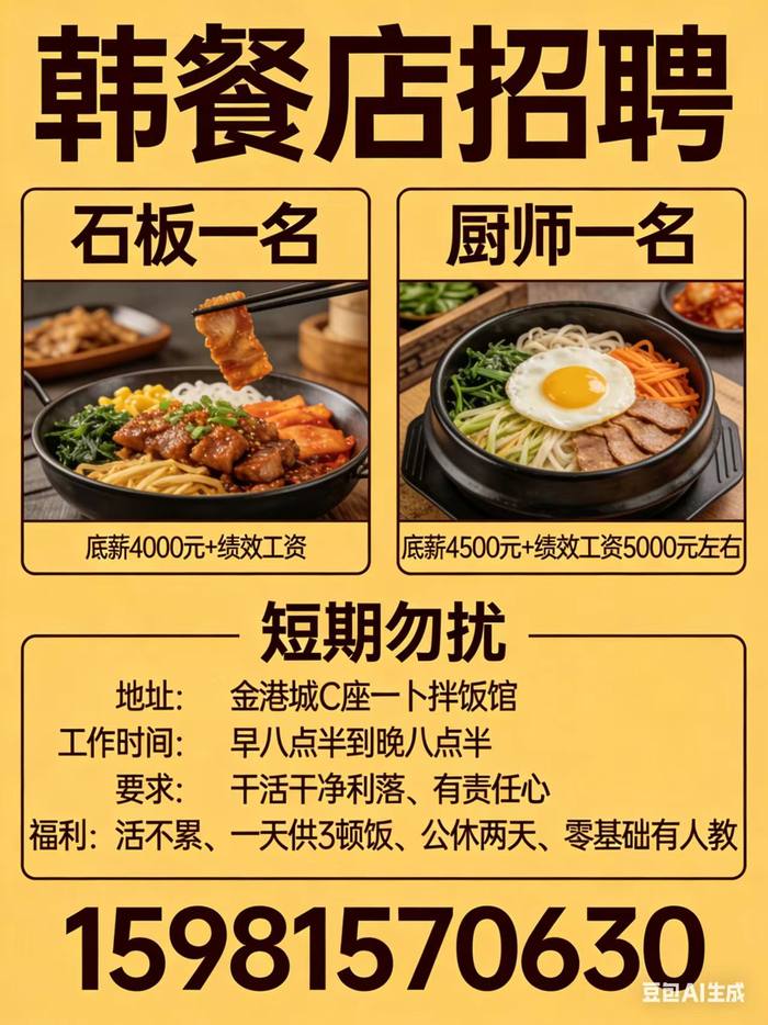 韩餐店招聘