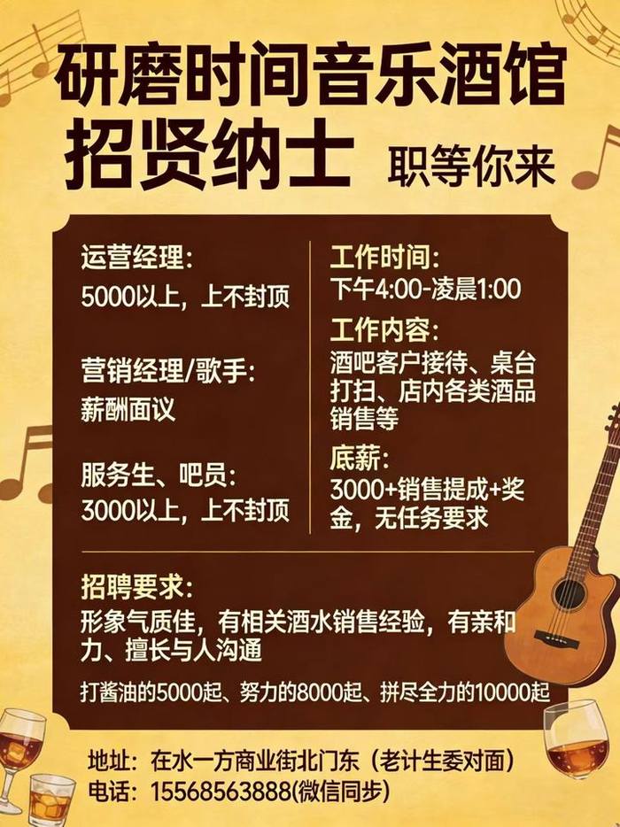 《2》营销经理/歌手: 薪酬面议
